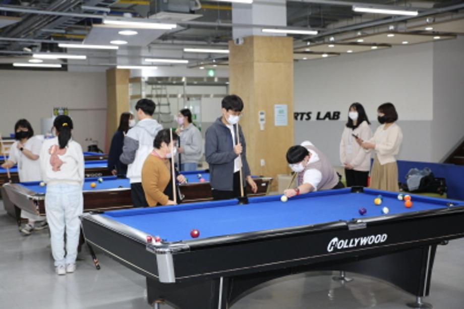 학생들은 발달장애인 청년들에게 라켓 쥐는 법, 당구 큐대를 잡는 법 등을 가르쳐주는 한편 팀을 나눠 게임을 하면서 발달장애인의 운동능력 제고는 물론 사회성을 키우는데 큰 도움을 주고 있다.