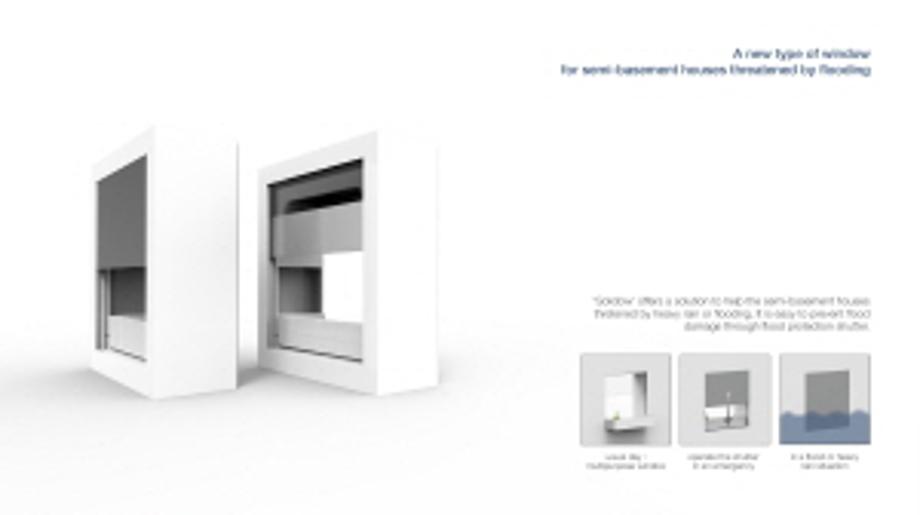 두 번째 수상작은 반지하 주택의 침수피해를 막기 위한 재난방지용 설치형 창문인 ‘Solidow’로 매년 여름 한국에서 발생하는 집중호우와 홍수로 인한 반지하 주택의 피해를 줄여보고자 고안된 제품이다.