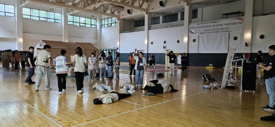 건양대학교(총장 김용하) 응급구조학과(학과장 박정희) 학생들이 국립중앙의료원 중앙응급의료센터가 주최해 천안 재능교육연수원에서 18일 열린 2023년 재난응급의료 비상대응매뉴얼 교육에 참여했다고 밝혔다.