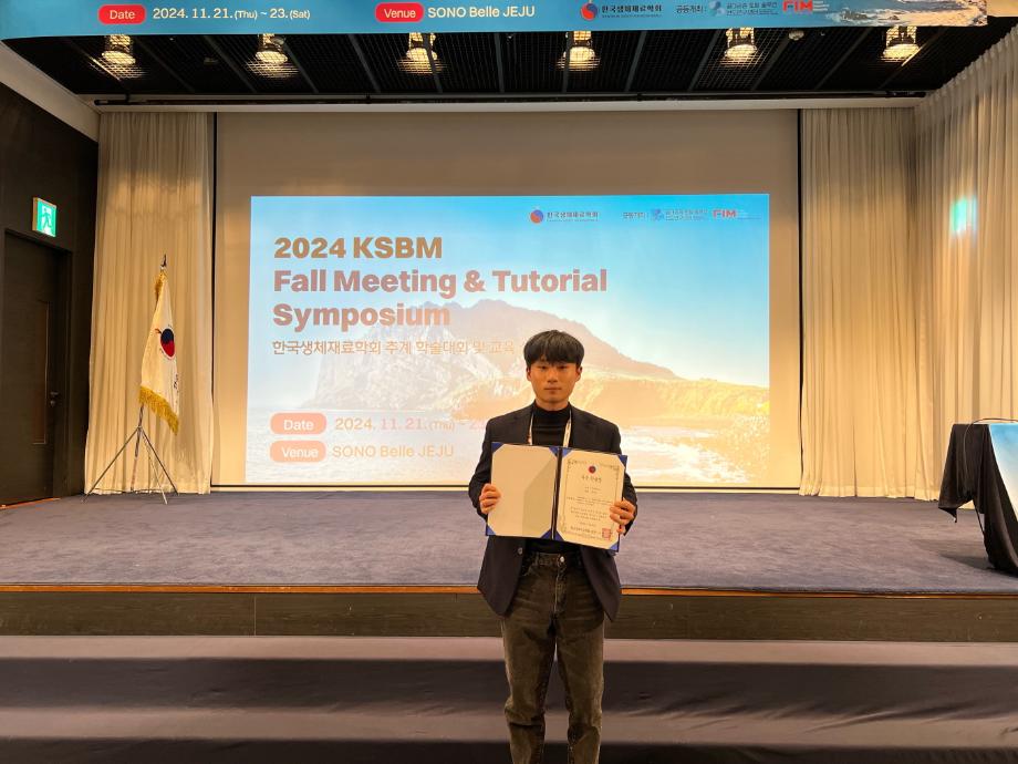| 제목 | 건양대 의료신소재학과 4학년 김규남 학생, 2024 한국생체재료학회 우수논문발표상 수상 | ||||