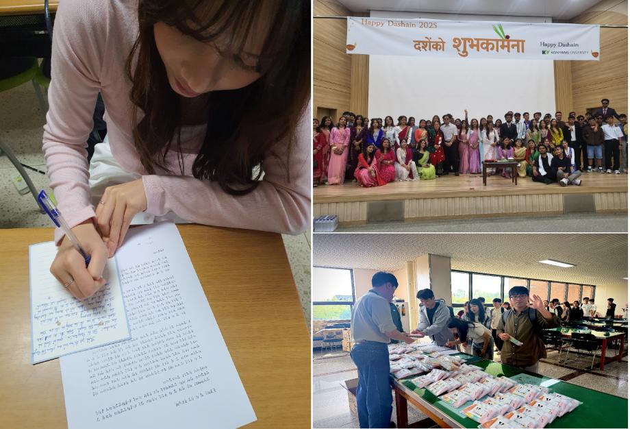 네팔 전통 명절 '다샤인(Dashain)' 축제로 고향의 정 나눔 국제의료관광학과(준비학과장 이걸재)와 국제군사학과에 재학 중인 네팔 유학생들은 10월 2일 글로컬캠퍼스 경상학관 강당에서 모국의 전통 명절인 <다샤인(Dashain)> 축제를 직접 기획하고 개최했다. 100여 명의 네팔 유학생들이 참여한 이 축제는 전통무용 공연, 전통놀이 체험, 티마(이마에 바르는 붉은 표시) 체험, 포토존 운영, K-POP 댄스 공연 등 다채로운 프로그램으로 구성되었다.